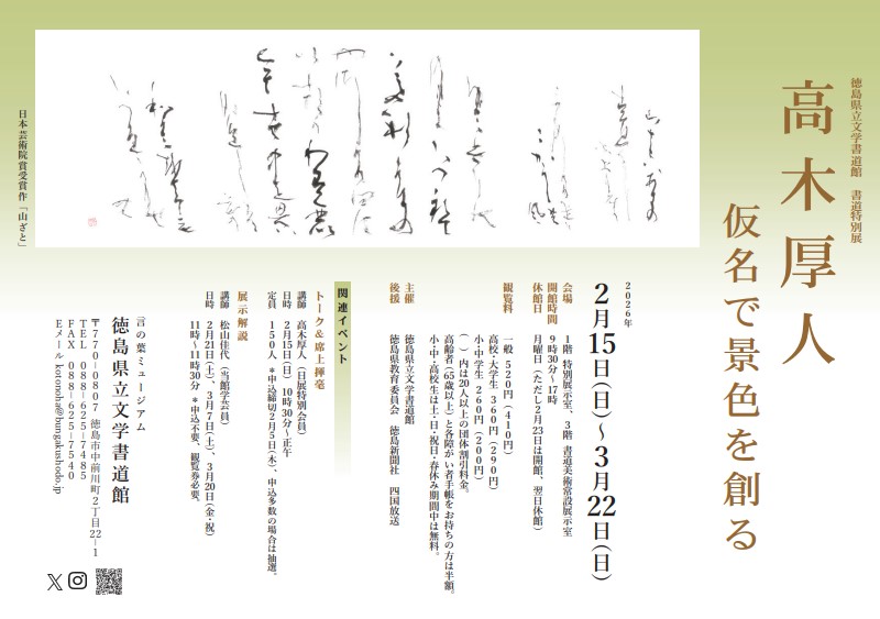 午前9時30分〜午後5時 休館日:月曜日(ただし2月23日は開館、翌日休館)